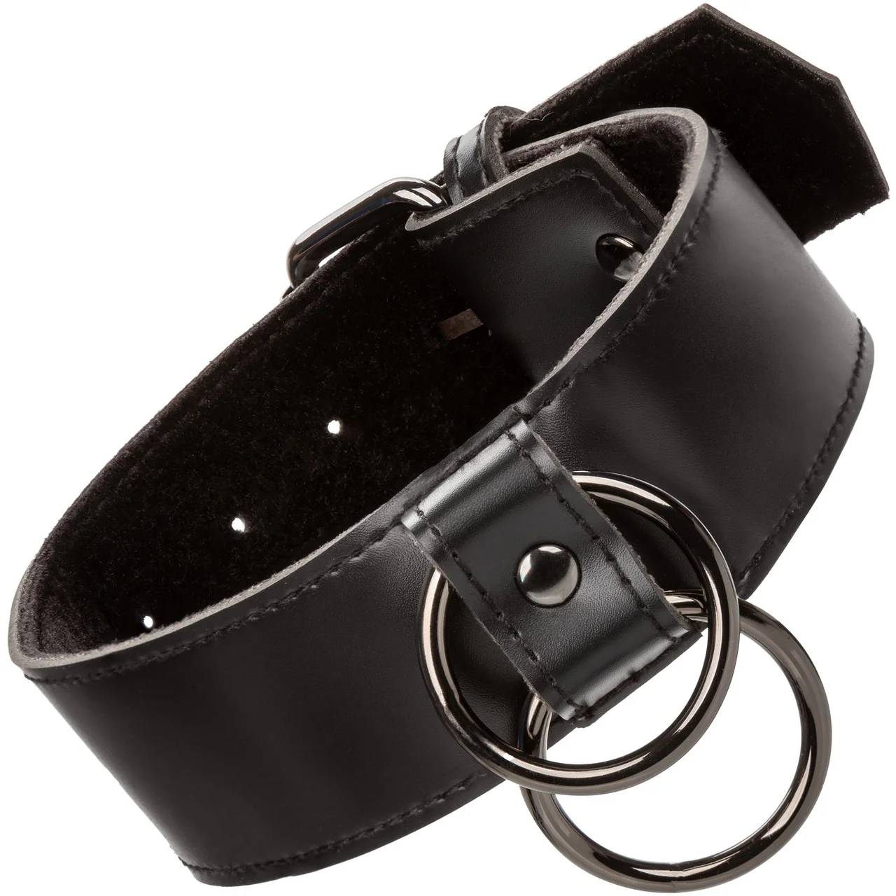 The collar is equipped with universal clasps and O-rings featuring a swivel design for full dexterity. This allows for versatile positioning and movement, allowing you to fully explore your dominant or submissive desires. With its sturdy double padding and double stitching, the collar ensures both comfort and reliability, even during the most intense sessions.