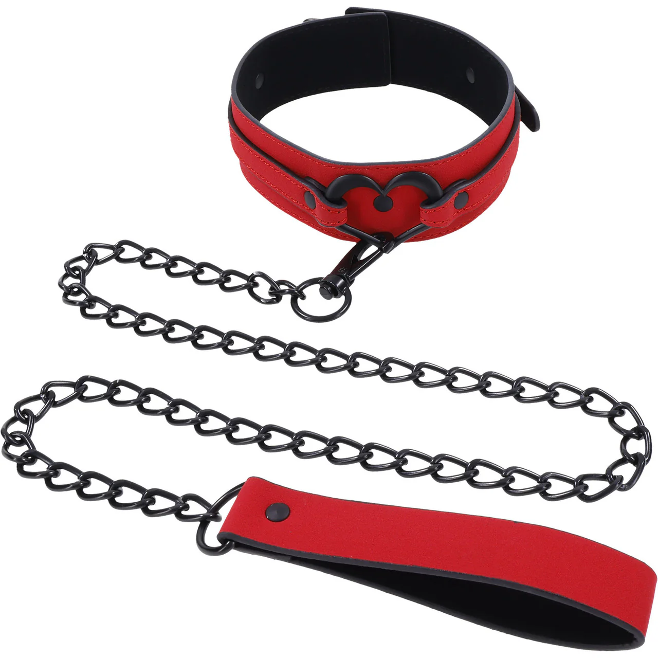 Explore the irresistible allure of the Sex & Mischief Amor Collar & Leash to guide you towards intoxicating sensations! Immerse yourself in a world of tantalizing pleasure with this exquisitely crafted accessory, adorned in a captivating red vegan leather and adorned with a dazzling silver heart embellishment. Feel the magnetic pull of desire grow stronger with each passing second, as you surrender to ecstasy.